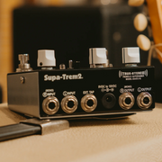A while back I started wondering what would happen if I took two completely separate Supa-Trem circuits and joined them together! Not fake-stereo like other Tremolo, Chorus, Phase, or Flanger pedals, these merely invert the signal at the output and send it to another jack...boring. The CS-ST2 v2 has two identical seperate circuits in TRUE-STEREO with two INs and two OUTs! It’s got enhanced-bypass thanks to hi-quality JFET buffered outputs. The CS-ST2 v2 is the IDEAL device to place at the end of your chain...run cables as long as you want, use it as your amp splitter.