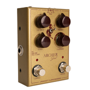 The Archer Select is truly the most versatile K style overdrive yet. Featuring the ability to switch between 7 diodes ranging from lowest to highest output using the clipping knob and left footswitch players can create endless combinations of K style tone from boosts to stacked drives and beyond